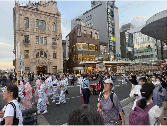 기요미즈데라 갔다가 히키니쿠토코메 교토에서 함바가를 먹고, 또 한 20분을 걸어 숙소로 돌아왔습니다. 너~무 더우니까 잠시 씻고 쉬었다가 다시 늦은 오후 거리로 나섭니다. 집사람은 쇼핑이 하고 싶어 궁둥이가 들쑥 들쑥! 울집 공주는 가챠랑 인형뽑기를 하고 싶어서 궁둥이가 들쑥 들쑥! 그래서 쇼핑하고 한바퀴 도니까 느즈막한 오후가 되더라고요. 마침 마쯔리가 진행되었습니다. 저는 마쯔리가 좀 익숙한 편인데 마쯔리가 처음인 울 가족들에겐 좋은 경험이 되었네요.