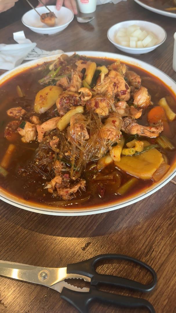 얼마 전 사무실 식구들과 점심을 같이 먹었는데... 누가 찜닭을 먹자고 하대요. 그래서 사무실 인근에 찜닭 맛집! 또이스 치킨찜닭 집을 방문했습니다. 여기는 점심때 부터 손님이 많이 오기 때문에 점심 시간보다 조금 일찍 도착했습니다. 찜닭이 한접시에 3만원?(순살은 3만2천)당면 추가하면 +2천원! 살짝 비싸긴 한데... 양이 어마어마 해요. 1접시 시키시고 밥까지라면 충분히 4인 식사 가능한 곳입니다. 후라이드도 맛있는데 오늘은 찜닭만 시켜서...비쥬얼 장난 없죠? 안동찜닭과 같은 간장베이스 아니고, 전형적인 옛날 야채 찜닭 스러운 빨간 베이스입니다. 당면도 엄청 많고 양이 풍부합니다.
