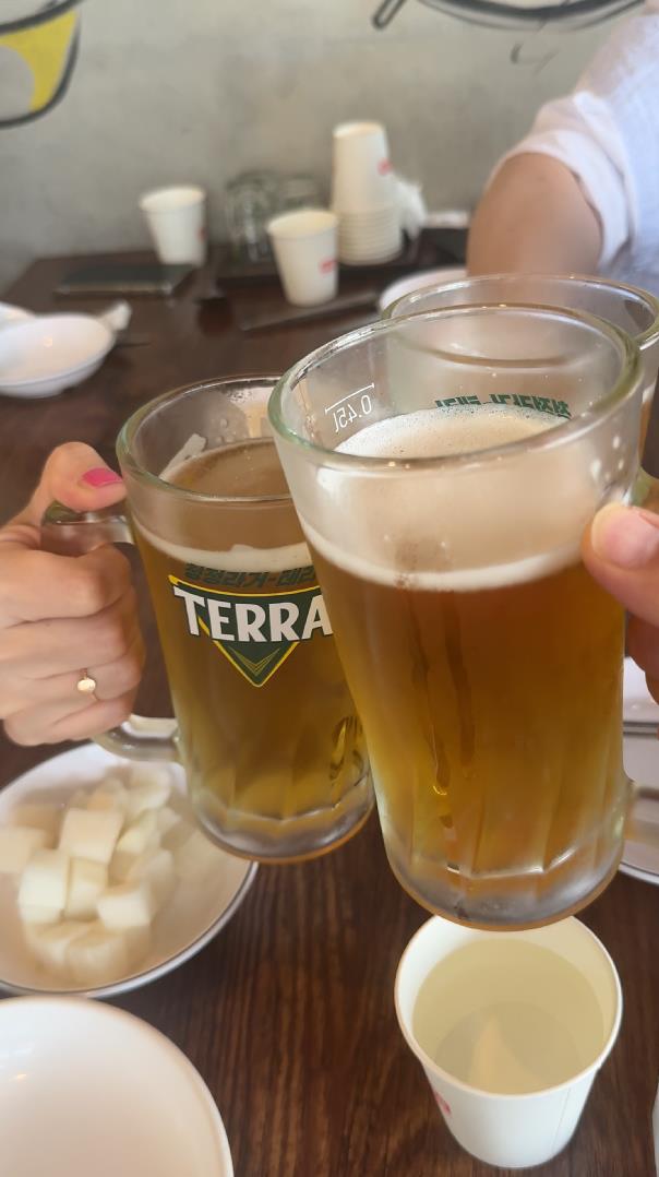 야채찜닭을 밥이랑만 먹다보니 생맥이 빠질수 없겠더라고요. 와~ 너무 너무 시원하더라고요. 원래 찜닭에는 소주로 해야되는데 낮부터 소주는 부담스러우니까...마침 이날은 차도 안가지고 출근한터라 맥주 딱 한 잔씩만 했습니다. 최소장은 절~때 음주 운전을 하지 않습니다. 예전에 전경생활할때 음주 단속을 해 본 경험이 있어서... 음주의 절~때 안된다는 것을 누구보다 잘 봐 왔기때문에... 최소장은 이제껏 음주 운전을 단 한 번도 해 본적이 없습니닷^^