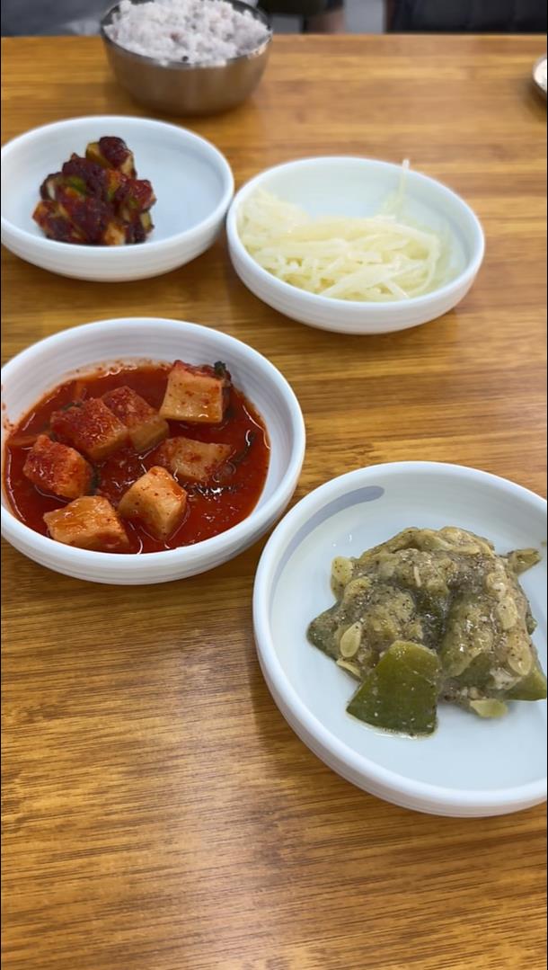 고바우 식당을 자주 찾는 이유 중에 하나가 메인 메뉴를 시키면 김치하나, 깍두기 하나 덜렁주는 그런 구성이 아니라 집밥처럼 어머니께서 직접 손수 만들어주시는 그런 맛을 느끼실 수 있는 기본 반찬과 함께 나옵니다. 감자볶음은 최소장 모친께서 해주시는 것 보다 더 맛나요.ㅋㅋ 분홍 소시지는 고바우식당의 시그니쳐 메뉴고요. 최소장은 저 분홍소시지만 있어도 밥한그릇 뚝딱하지요. 오늘은 호박볶음도 상당히 맛났어요~ 소시지랑 감자볶음, 호박볶음은 한 접시씩 더 먹었어요~ 더 달라하면 더 주신답니다~