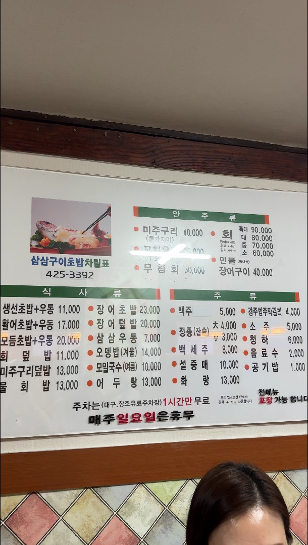 먼저 말씀드리지만 이건 ‘내돈내산’ 후기입니다! 친구 가게지만 계산은 확실히 해야줘. 캐셔에는 항상 엄마가 계시거등요.물론 친구 가게라 서비스가 없진 않았지만, 공짜로 먹은 건 절대 아니에요 ㅎㅎ저는 회보다는 민물 장어구이를 좋아해서 민물장어구이랑 생선초밥+우동 세트(₩11,000) 를 주문했습니다. 기본 찬도 깔끔하고, 특히 무침회가 정말 예술이에요. 삼삼구이의 초장 맛이 압도적이라, 초장에 듬뿍 찍어 먹는 재미가 있습니다. 친구라 그런지 양도 살짝 많았던 것 같긴 하네요 😄
