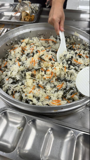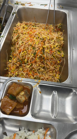 메뉴판을 보니 이번 주만 3번 방문했군요. 어제 방문사진인데요... 영양사님 감독?하에 밥과 반찬5가지, 그리고 국을 가지고 식탁에 앉아 드시면 됩니다. 테이블과 의자 수는 충분한거 같아요. 피크타임을 피해서 식사를 하러 가서 그런지 아직 간동안 테이블이 없어 식사를 못하시는 경우는 못본거 같습니다.