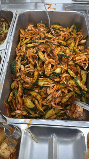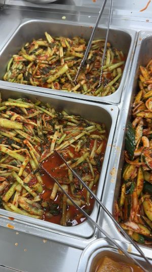 어제는 최소장 좋아하는 곤드레밥이 나왔어요. 메인 반찬으로는 코다리무조림인데 최소장이 물고기류를 즐기지 않아서 조금만 담고 콩나물과 잡채를 메인으로 담았습니다. 근데 저 콩나물이 너무 맛있어요. 다 먹고 콩나물과 잡채를 섞어 콩나물 잡채밥으로 추가 흡입했습니다. 오이 무침과 열무김치도 너무 맛났습니다. 안 믿으시겠지만 최소장이 원래 밥을 많이 안먹어요. 평상시 두 그릇이 잘 없거등요? 근데 이 날은... 콩나물무침이 문제였어요. 잡채랑요... 원래 식당 잡채에 잡채랑 당근정도?가 끝인데 여기는 버섯에 어묵까지...완벽한 식사였습니다. 집밥과는 비교하긴 뭐 하지만 일반 식당 밥보다 훨씬 저렴하고, 맛나고... 메뉴를 내가 고를 수 있는 것만 제외한다면...계속 즐길 수 있는 식당인 것 같습니다. 물론 어느정도되면 물릴 수 도 있겠지만 메뉴가 메일 바뀌니까... 늘 고민스럽던 짜장이냐 짬뽕이냐를 고민하는 것 보다는 좋은 선택인 것 같습니다.