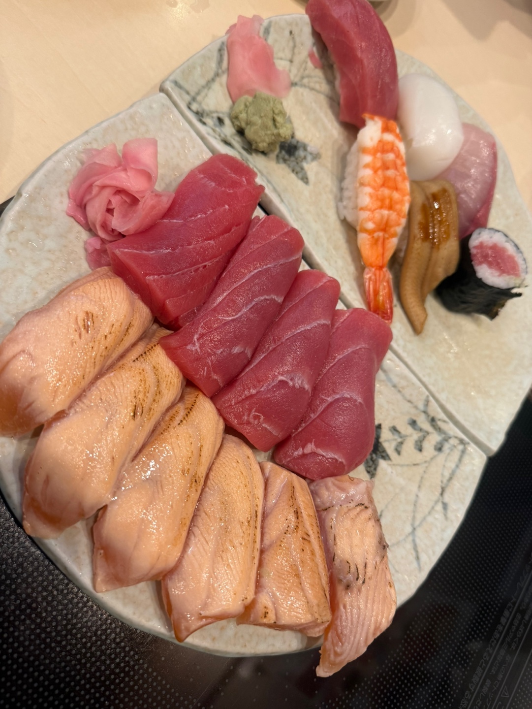 저분들은 그냥 스시 장인같이 보이지 않으십니꽈? 여자분들 말고요~ 저희 가족은 " 혼마구로동"이랑 "보통정식"을 런치메뉴에서 주문하고 다른 여러 메뉴도 같이 주문했지요. 차가 없으니 이건 좋은 거 같아요. "나마비~루"도 같이 주문했지요~ 지금 보니 "신정식" 저 메뉴도 시켰어야 했나봐요. 가격이 완전 미친 가격인데요?