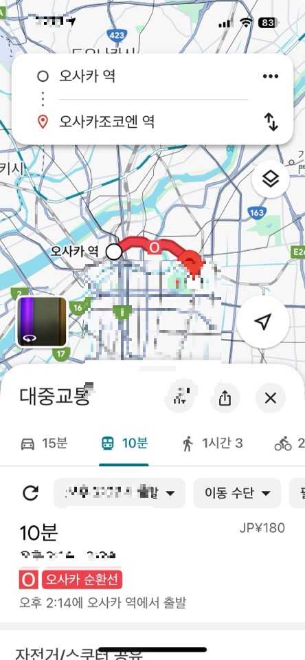 커다란 오사카역은 언제봐도 멋있는듯! 우린 오사카역에서 순환선타고 오사카 조코엔 역으로 갔습니다. 오사카 성은 지난해 빠트린 관광지로 오사카 성을 가기위해 주변에 많은 역이 있지만 우리 가족은 트레인을 타기 위해 오사카 조코엔역으로 갔습니다. 아우~ 저 뙈앙볕 좀 보세요... 역에서 오사카성까지 한참인데... 걸어갈 자신이 없어서 우린 바로 저 트레인을 타기로 한거죠! 얼마였는진 기억이 안나네요.