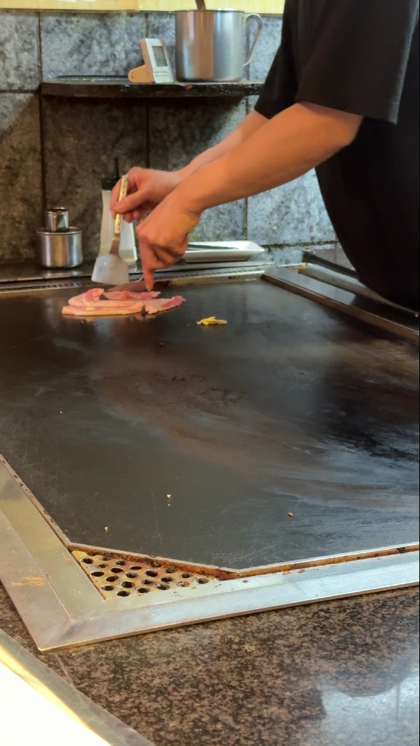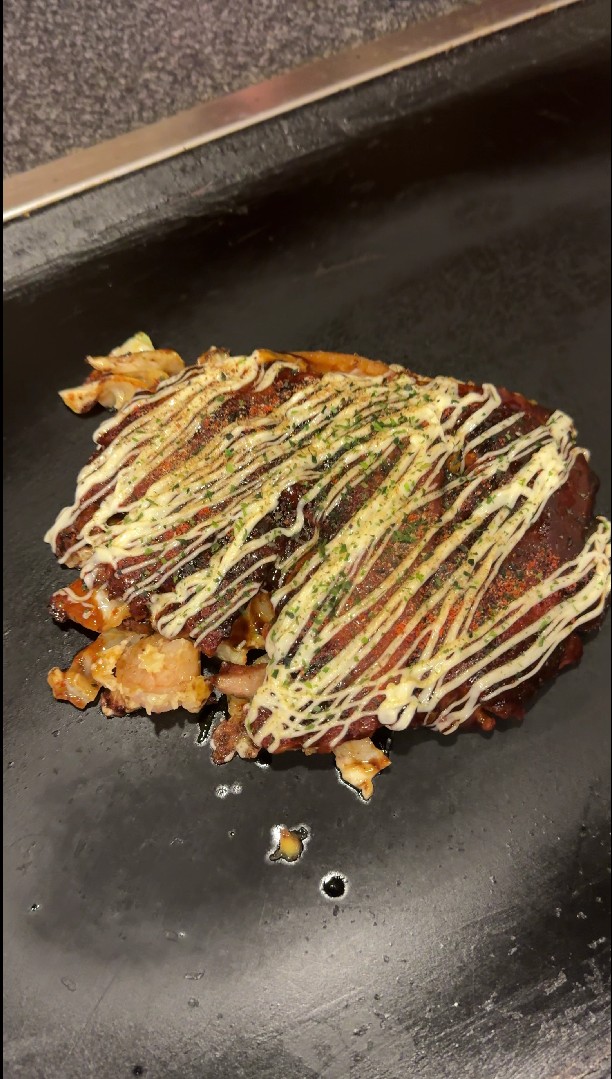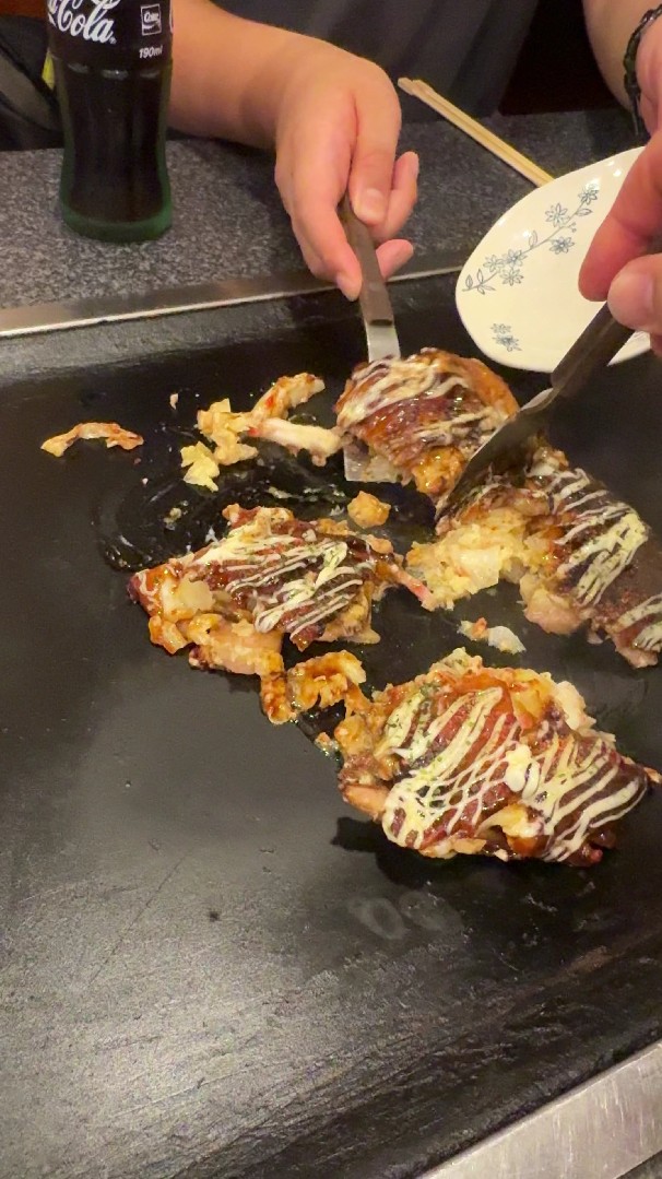 조리는 우선 다찌 한켠에서... 완성되면 저희 테이블로 옮겨주십니다. 근데... 양이 좀 적네요. 근데 맛이 맛이... 제가 이때까지 먹은 오꼬노미야끼는 찌짐이었지 머에요? 와~ 맛이 진짜 태어나서 첨 먹어본 맛이었습니다. 저는 이번 여행에서 1등! 다시 먹고 싶어!!!
