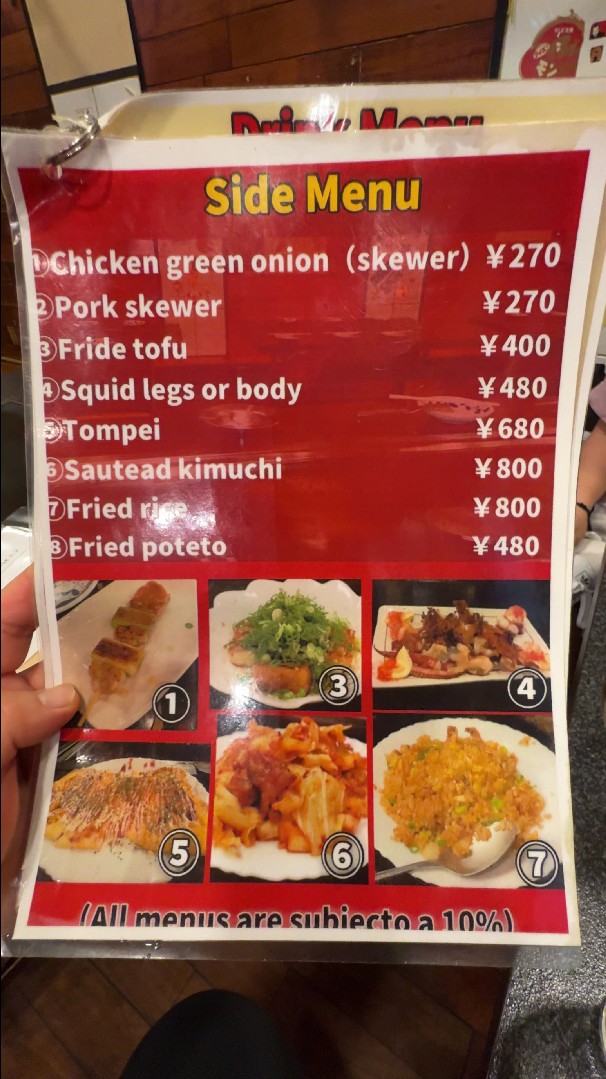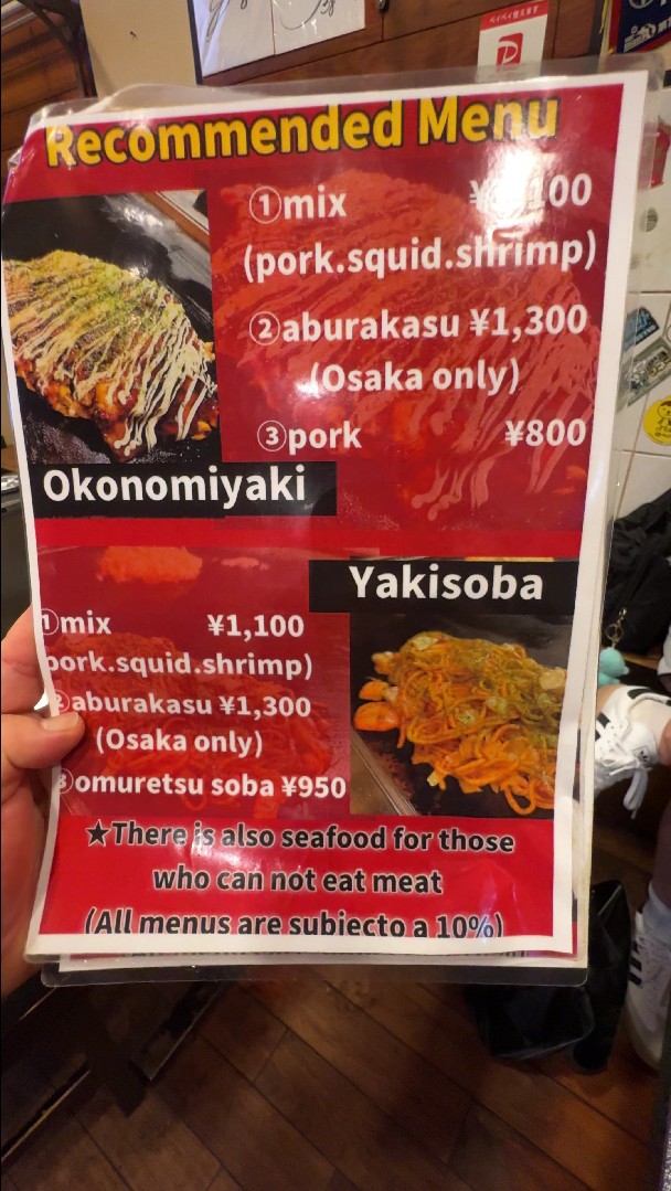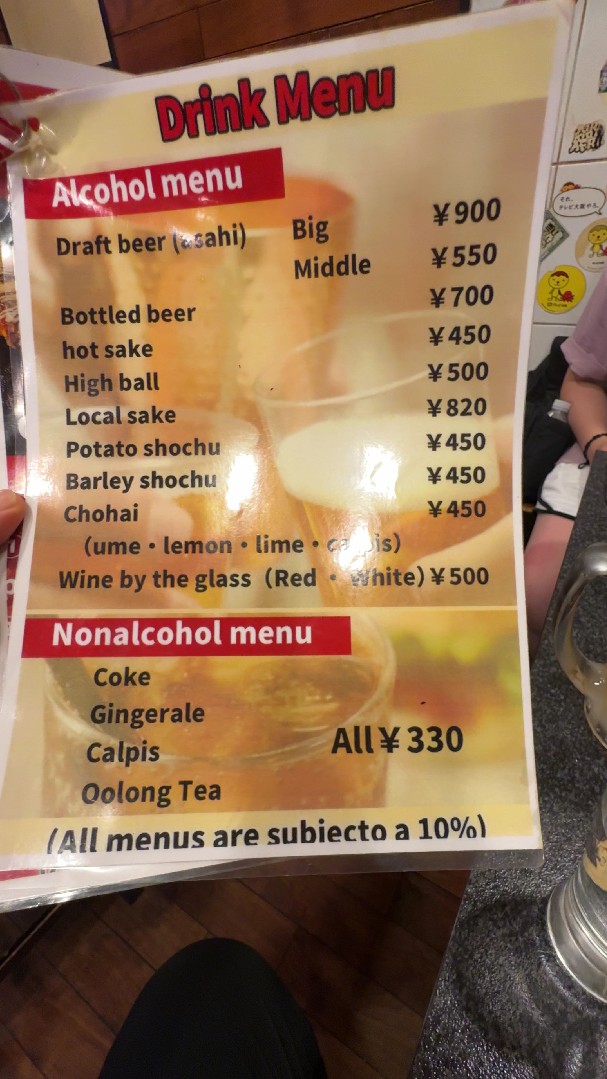 5시 오픈으로 알고 시간 맞춰갔는데... 5시 15분 오픈에 11시까지라... 아~ 장사는 이래 해야되는데... 주인 아줌마가 영상에서 본 그 아줌마가 맞았습니다. 활기차기 반갑게 맞아주시네요. 마츠다 행님은 아부라카수?를 시키시던데... 그 맛을 알수 없으니 일단 우리는 오꼬노미야끼 믹스 2인분이랑 야끼소바 2인분! 그리고 생맥주 저는 큰거 집사람은 작은거...애들은 콜라! 역시 일본은 음료값이 비싸군요.