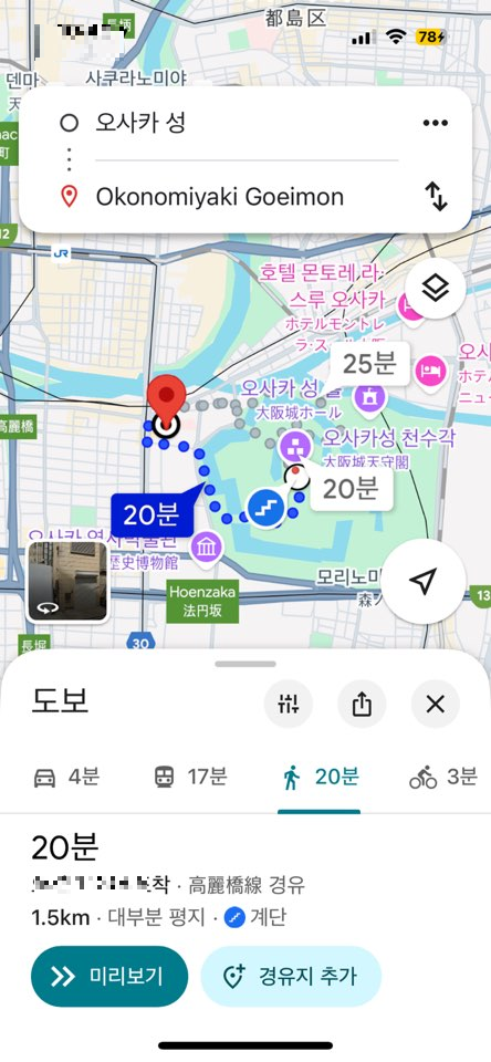잘봤습니다~ 이제 먹으러 가야죠? 작년에 오꼬노미야끼 노래를 불렀는데... 못먹었거등요. 올해는 오꼬노미야끼때매 오사카 왔다고 해도 과언이 아닙니다. 요새 '오사카에 사는 사람들TV'를 즐겨보는데 마츠다 행님이 오사카 성 인근에 오사카 TV 방문하고 오코노미야끼 먹으러 가시는 장면이 있어요. 바~로 출발! 아~ 근데 도보 20분? 성 안에서 나가는 거리때문에 택시도 못타고...