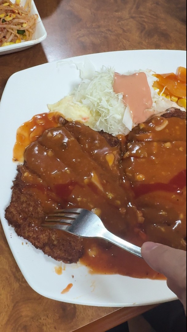 그런데… 오랜만에 진짜 맛이 제대로 돌아왔습니다. 최근 두 번은 좀 별로였는데, 이날은 정말 맛있었어요. 전원과 비교하기가 어려울 정도로 좋았습니다.이날 케챱이 마지막에 좀 뭉쳤던 거?랑 방바닥이라 다리 저렸던 거? 말고는 모든것이 완벽했습니다. 특히 콩나물 무침 + 돈까스 조합은 정말 추천드려요. 양이 많지 않다고 생각했는데, 밥이 푸짐해서 그런지 꽤 배부르게 먹었습니다.