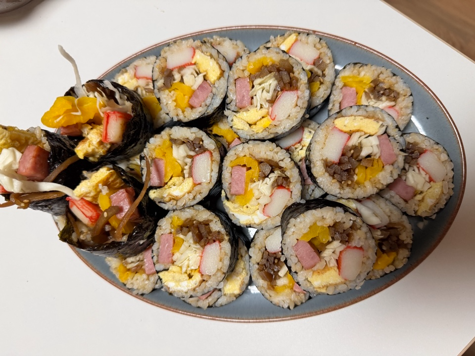 김밥은 한국에서 가장 사랑받는 요리 중 하나입니다. 맛있게 지은 고슬한 밥에 각종 채소와 기호에 따라 햄등을 김에 싸서 여행을 갈때도 간단한 끼니를 해결할 때도 김밥은 한끼의 식사를 제공합니다. 최근에는 건강에 좋은 재료만으로도 충분히 만들 수 있고 집에서 만드는 재미까지도 있습니다.