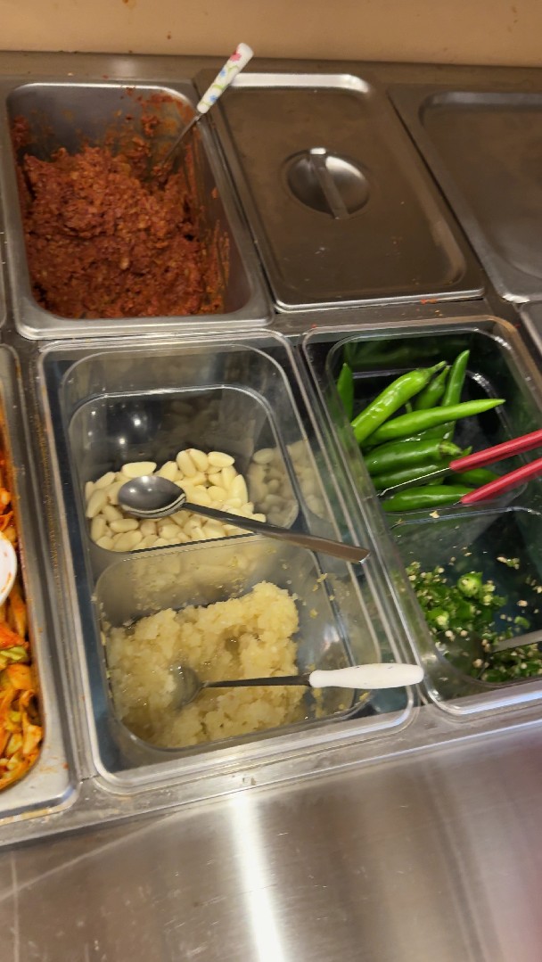 근데... 기본찬을 왜이렇게 조금 주는거지? 기대감을 안고 자리에 앉았는데 허접한 기본 반찬에 살짝 당혹스러웠다고나 할까? 그런데... 이유가 있더라고요. 매장 한켠에 셀프바가 있는데 각종 음식들과 반찬들을 무한으로 즐길 수 있게 마련해 두셨더라고요. 기본찬은 물론 순대, 오징어무침회 역시 무한으로 리필이 가능하다는 점!