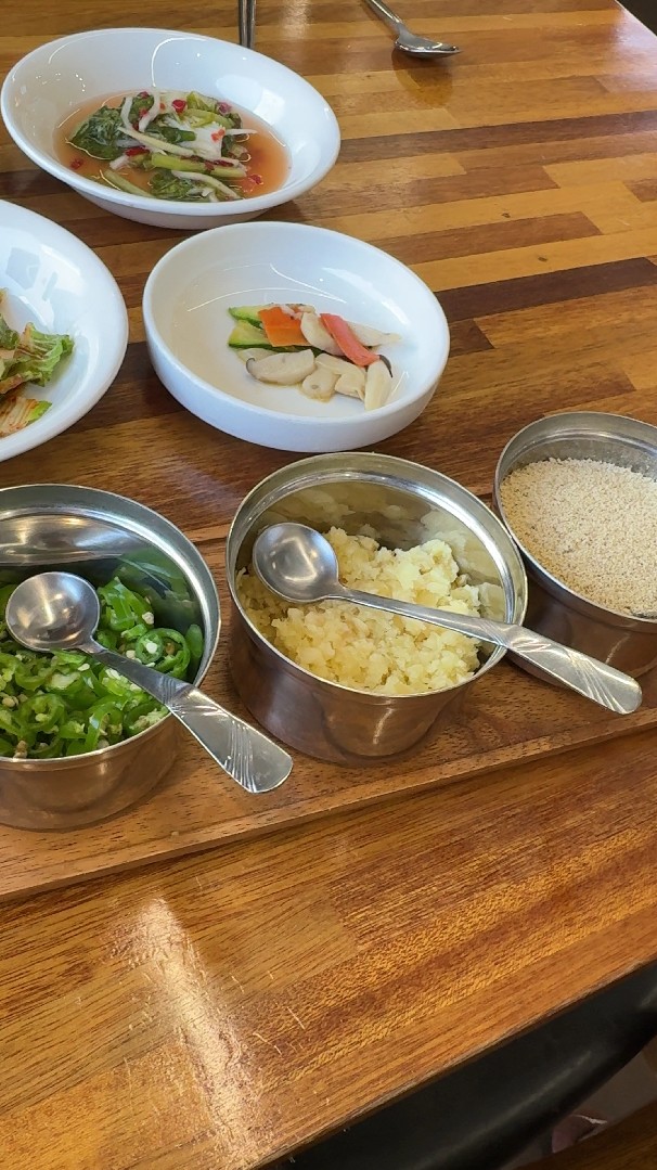 최소장은 장어탕을 시켰습니다. 음... 장어가 들어갔는지 안들어갔는지... 확인은 안되더군요. 갈린 장어들이 살짝 살짝 보일 법도 한데... 장어 팍팍 좀 넣어주시지... 넣어주신건가? 암튼 뭐 맛있으면 장땡이니깐요. 맛났어요. 청양,마늘,들깨가루는 장어탕을 위한 첨가물입니다. 개인적으로 다~ 좋아하는 첨가물이죠. 청양,마늘,들깨가루 세트는 수시로 넣어줍니다. 넣을때마다 맛이 달라지니깐요. 저 최소장은 청양, 마늘, 들깨가루 얘네들이 너무 좋아요. 최소장은 얘네들을 처음부터 듬쁙 듬쁙 넣지 않습니다. 쪼큼씩 쪼큼씩...