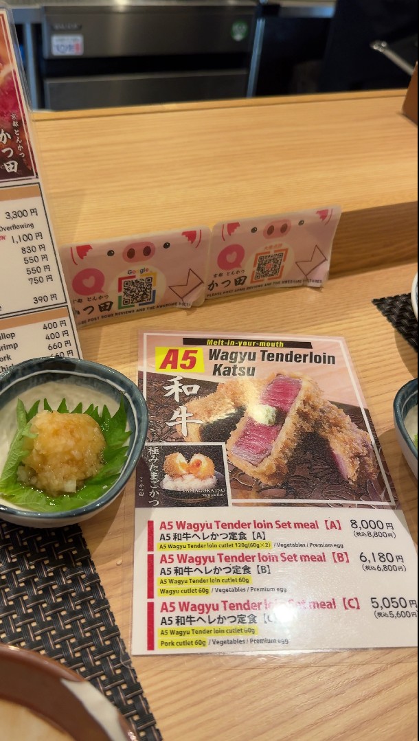 이 날은 숙소를 교토역 인근으로 옮기는 날이라 서둘로 피로를 풀어야 했습니다. 그래서 좀 자다가... 샤워하고... 체크 아웃시간 딱! 맞춰서 저희는 체크 아웃을 했더랬죠. 점심에 대한 별다른 계획은 없었는데 걍 암꺼나 먹을까 하다보니 숙소앞에 돈카츠, 규카츠 집이 있더라고요. 그래서 우리가 일본와서 돈카츠 종류는 안 먹어봤으니 먹어보자고 해서 OMO5 교토 산조 바~로 건너편 "교토 돈카츠 가츠다 산조 카와라 마치"로 갔습니다.