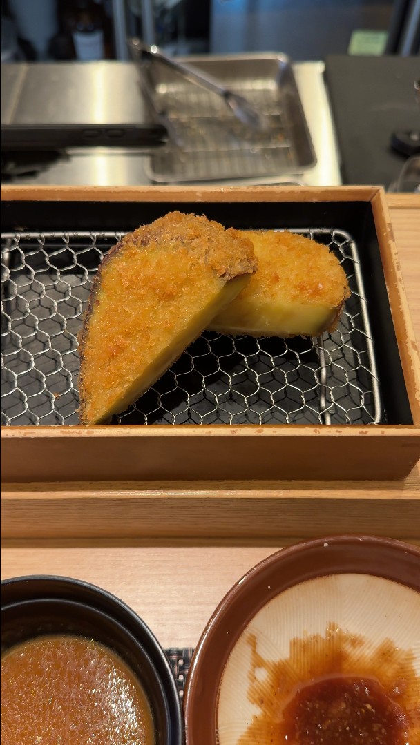 집사람이랑 저랑은 SET MEAL(A)로 애들 둘은 SET MEAL(WAGYU)로... 어른들은 싼거 애들은 비싼거... 얼로 주문했습니다. 구성은 고기 2, 야채튀김, 계란튀김 이렇게 구성됩니다. 튀김용 조리기구가 2개 있는데 하나는 고기를 튀기는 용도로 또 하나는 야채를 튀기는 용도로 사용하나 봅니다. 야채 튀김에는 야콘 튀김이랑 고구마 튀김... 이렇게 구성되어 나오는데 야콘 사진이 없넹~